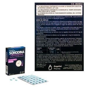 La Melatonina es una hormona que se sintetiza en la glándula pineal de nuestro cerebro. La secreción de melatonina tiene lugar durante la noche, preparando el cuerpo para iniciar el sueño. La melatonina nos ayuda a disminuir el tiempo necesario para conciliar el sueño (el efecto beneficioso se obtiene con la ingesta de 1 mg de melatonina) y a aliviar la sensación subjetiva de desfase horario (jet lag) (el efecto beneficioso se obtiene con la ingesta mínima de 0,5 mg de melatonina).
